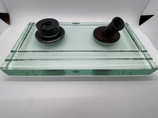 Vintage Glass Double Well, Double Pen Tray