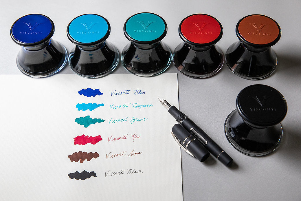 Visconti is delighted to announce the launch of their new 2022 inkwell collection. For the first time in nearly a decade the Visconti team presents an entirely new ink bottle, combining a more stable design with groundbreaking functionality. The new bottles are made from high quality reinforced glass and have been redesigned to offer aesthetic appeal as well as improved stability when resting on a desk. The bottles also feature an innovative new ink collection system which enables the user to collect every drop of ink inside the bottle.
