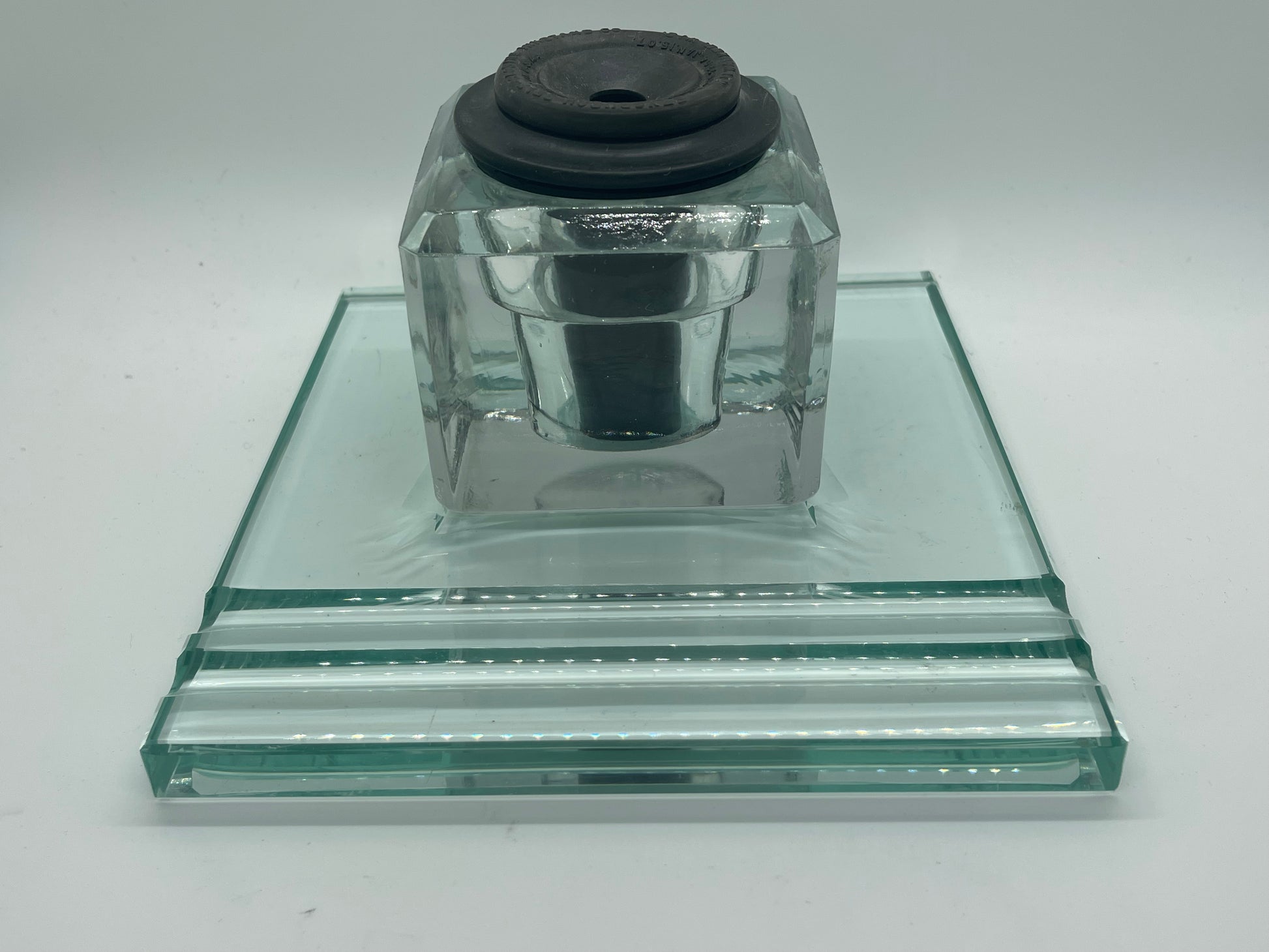 Vintage Glass Desk Ink Well and 2 Pen Tray
